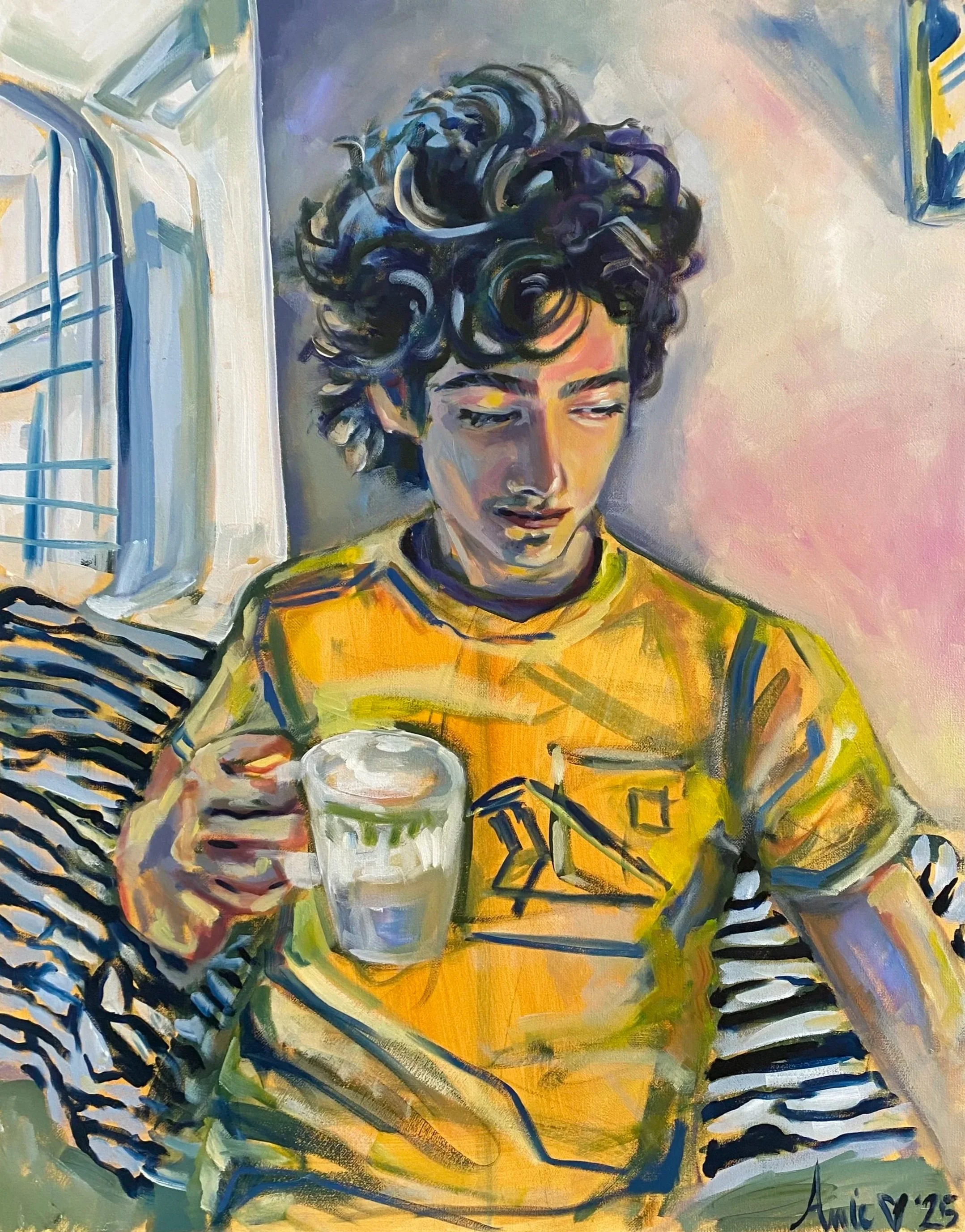 Morning Coffee is a portrait of my fiancé, with our shared morning coffee. It’s a quiet ritual that anchors our days—no matter how busy life gets or how much our routines shift, we always make time to wake up together.