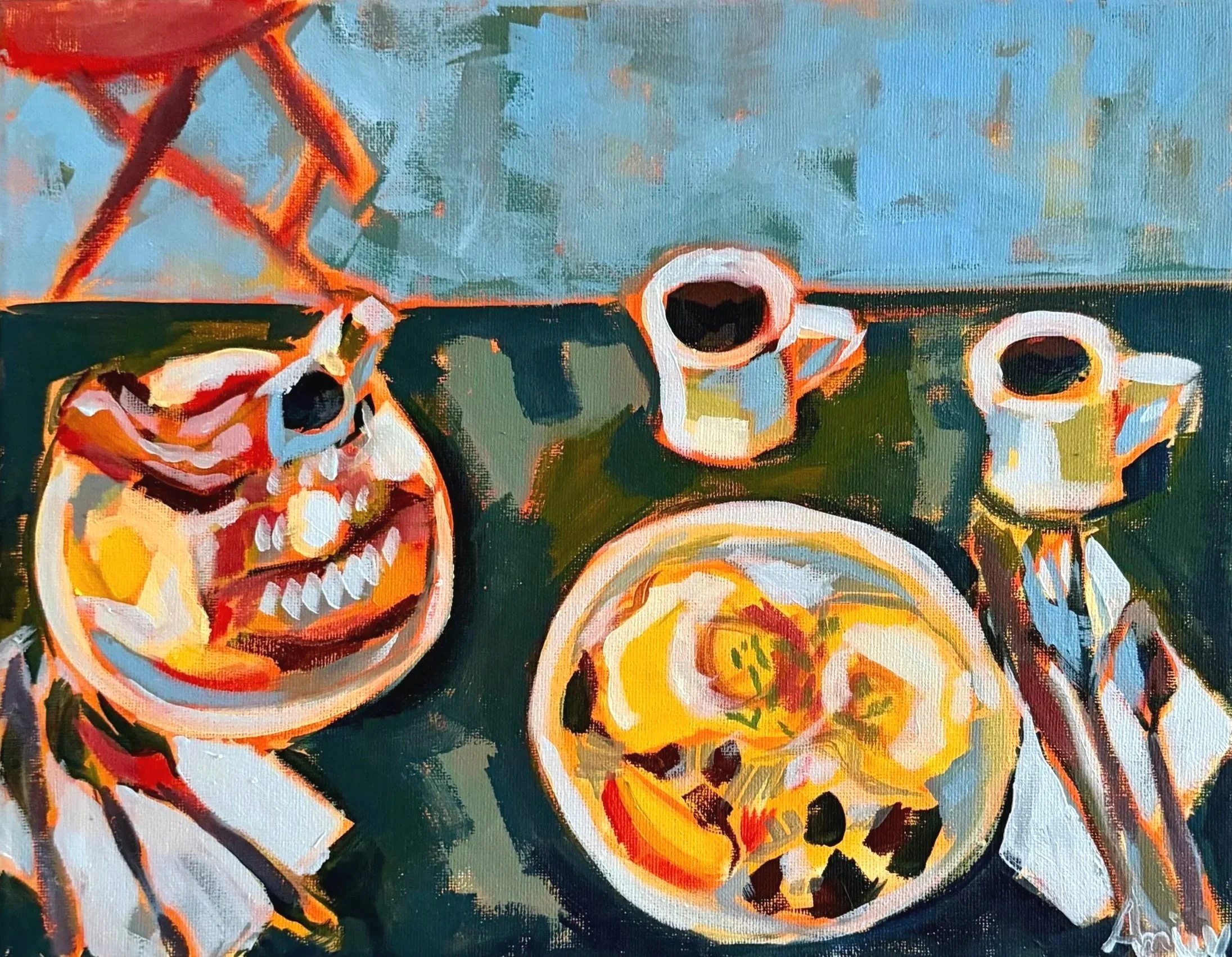 This piece focuses on the quiet moment of sitting by the window and taking in the space. The composition emphasizes structure and light, balancing observation with bold and expressive color and brushwork. Painted from a photo taken at The Daisy Cafe, this work continues my interest in documenting ordinary experiences and translating them into intentional, composed images.